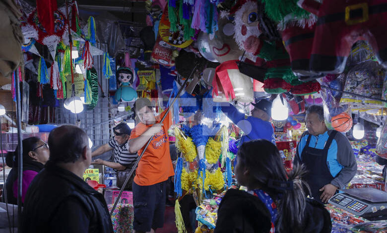 En el mercado de Sonora, un tradicional sitio de producción de piñatas, artesanos como Esperanza Ceballos y su familia se afanan en ultimar sus productos en forma de estrella, a pesar de que esperan una venta “muy floja” este 2025 debido al aumento del costo de los materiales que usan.