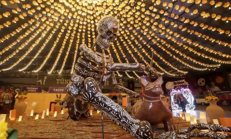 Con calaveras monumentales honran a la muerte en Atlixco, Puebla