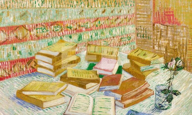 En este cuadro, Van Gogh pinta un conjunto de libros -en su mayoría de cubiertas amarillas- esparcidos sobre una mesa; de ellos, solo uno abre sus páginas, invitando al espectador a leer.