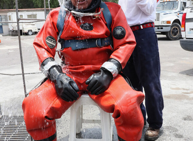 “Cuando entro, a los diez centímetros, pierdo totalmente la visibilidad y trabajo totalmente a ciegas. Como ya conocemos cómo es el funcionamiento de las plantas, de las bombas y los lugares donde están las descargas y las llegadas, todo lo voy haciendo a tientas”, señala el buzo.