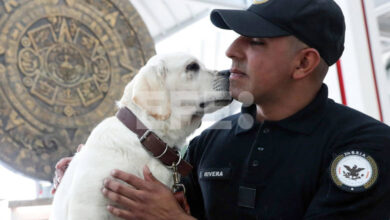 Canes amigables brindan apoyo a viajeros con estrés a volar en el AIFA