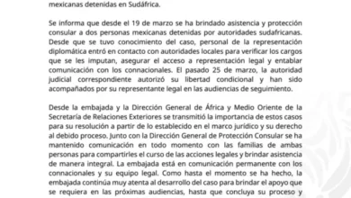 México da seguimiento en Sudáfrica a periodistas detenidos, están en libertad condicional