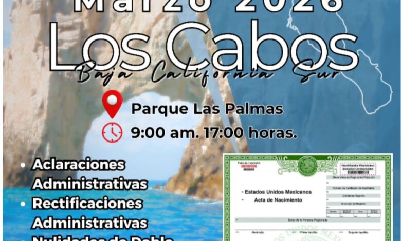 Dijo que la jornada se realizará en Los Cabos los días 21, 22 y 23 de marzo en el Parque Las Palmas, en un horario de 9:00 de la mañana a 5:00 de la tarde.