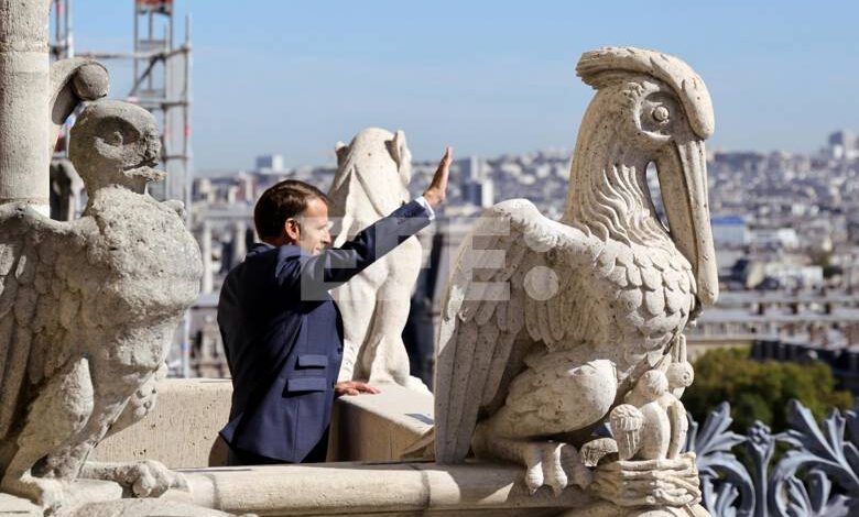 El presidente francés, Emmanuel Macron, hizo hoy el recorrido por las torres de la catedral de Notre Dame, para conocer en primera persona el nuevo recorrido.