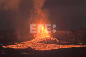 Los Ángeles, EU 23 abr (EFE). – El volcán Kilauea de Hawái, uno de los más activos del mundo, entró en erupción nuevamente este jueves arrojando plumas de lava de hasta 300 metros de altura, lo que marca la emisión número 45 en último año y medio, informó el Servicio Geológico de los Estados Unidos (USGS).